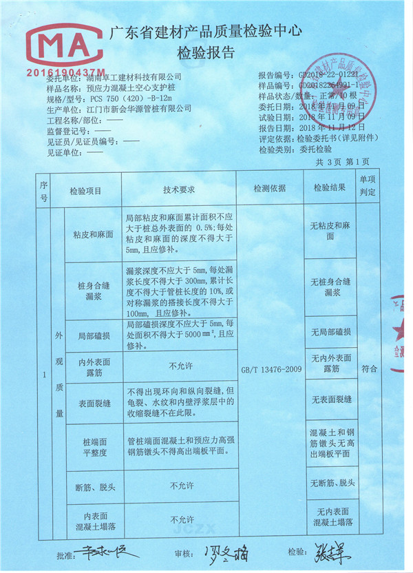 PCS預(yù)應(yīng)力空心支護樁 產(chǎn)品檢測包括:產(chǎn)品外觀質(zhì)量檢測、產(chǎn)品尺寸允許偏差檢測、抗裂性能檢測、抗彎性能檢則、抗剪承載力檢測等 。